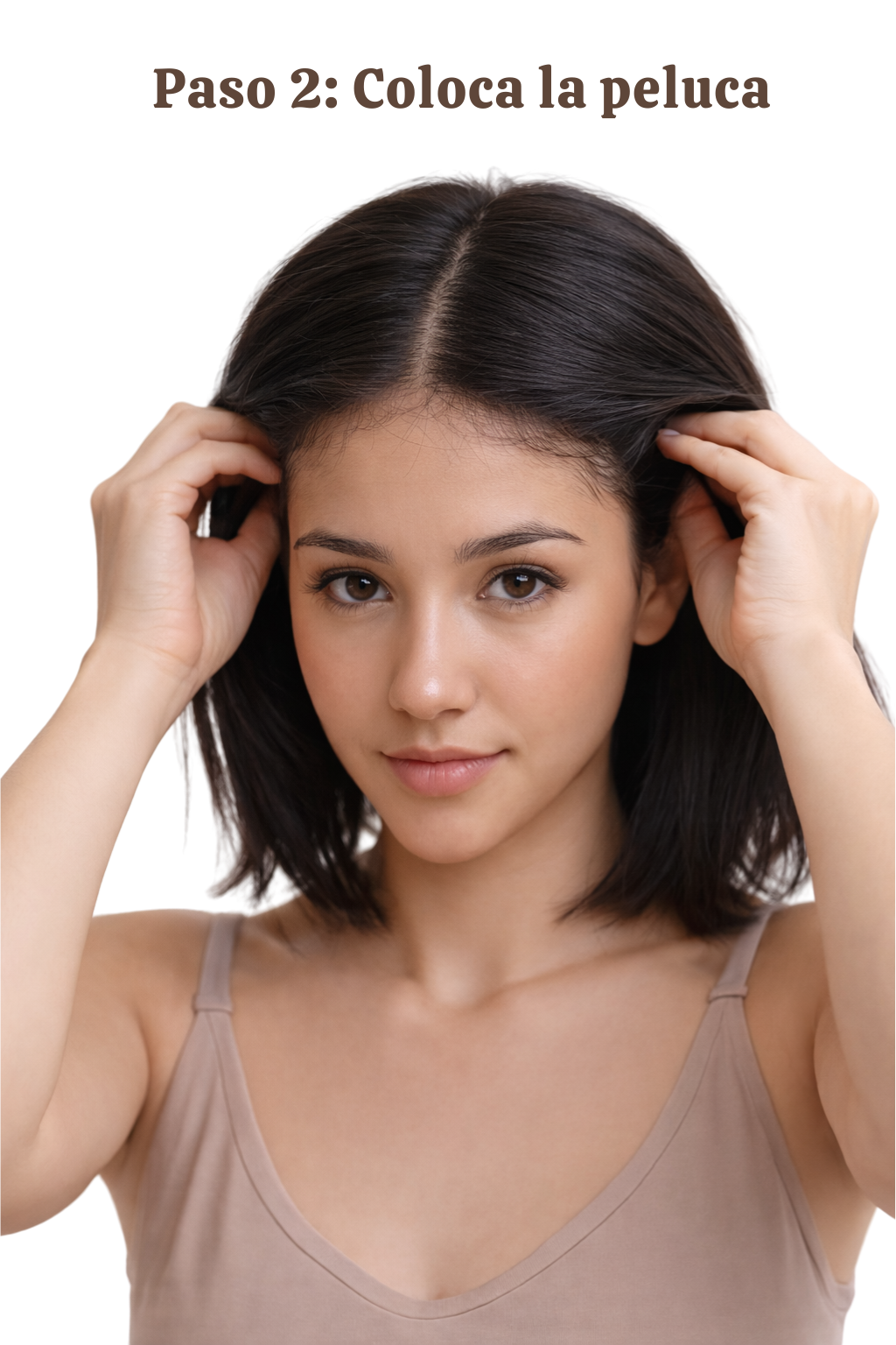 Coloca la peluca desde la frente hacia atrás, alineando el encaje con tu línea natural del cabello.